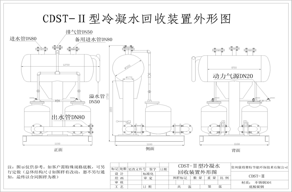 CDST-Ⅱ型冷凝水氣動回收組合泵裝置(除底板)均為不銹鋼304制作,包括內部機構,堅固防蝕。