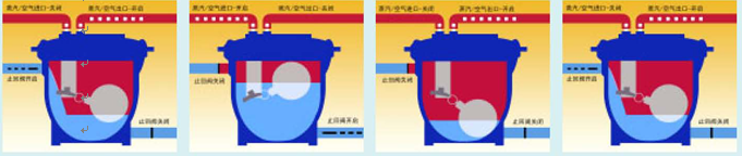 3.隨著凝結(jié)水的排出,浮球下降,直至聯(lián)動(dòng)機(jī)構(gòu)運(yùn)作到原來(lái)相反的位置。